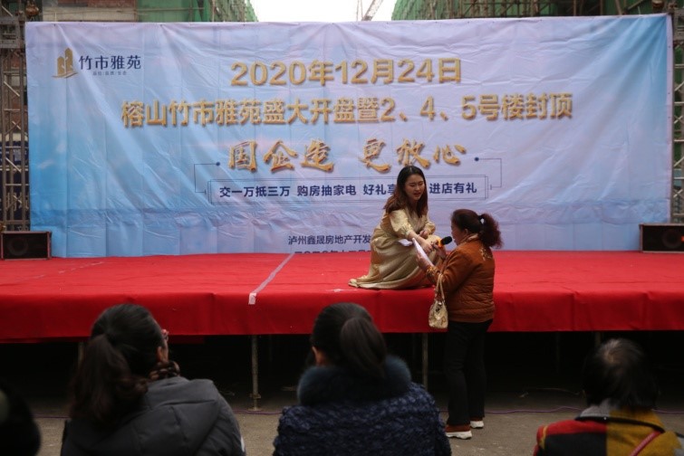 2020年12月24日上午,鑫晟地產(chǎn)公司在竹市雅苑售房部現(xiàn)場隆重舉行項目開盤暨2、4、5號樓封頂活動。豐富多彩的節(jié)目表演、精彩有趣的有獎問答吸引了周邊群眾觀看、參與。 此次活動達到了很好的宣傳造勢效果,使“國企造,更放心”深入人心。